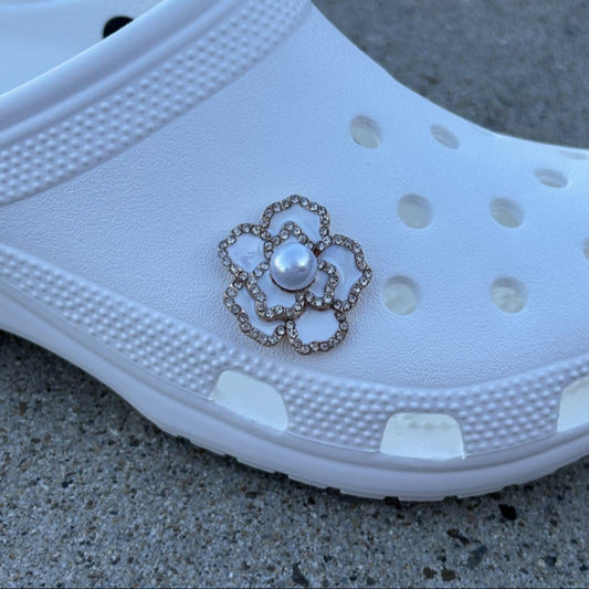 White Flower Bling Croc Charm